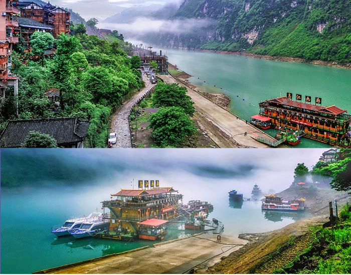 早餐后,乘车赴【九黎城】参观九黎宫、蚩尤大殿、九黎部落~~乌江画廊、长寿古镇(有着千里乌江百里画廊,秀绝比三峡之称)