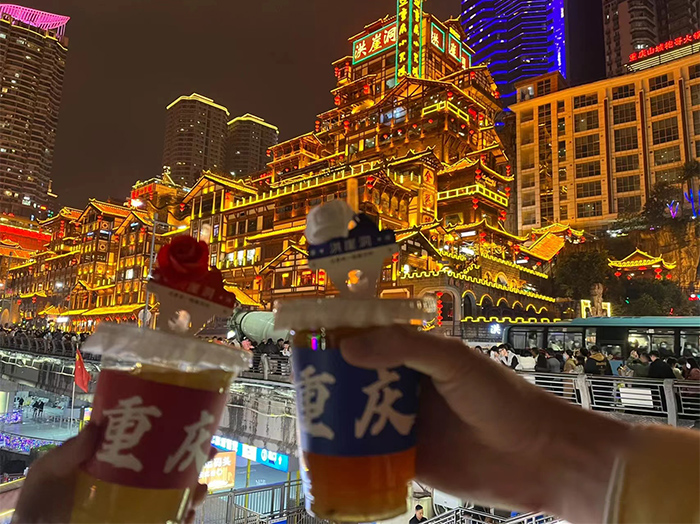 我们是从江苏出发,飞机抵达重庆江北国际机场,一出站就看到提前预约的小梦已经在等我了。抵达重庆自然是要从解放碑开始解锁各色小吃,吃饱喝足后,可以在晚上8点后打卡洪崖洞,随后前往千厮门大桥拍摄洪崖洞全景。